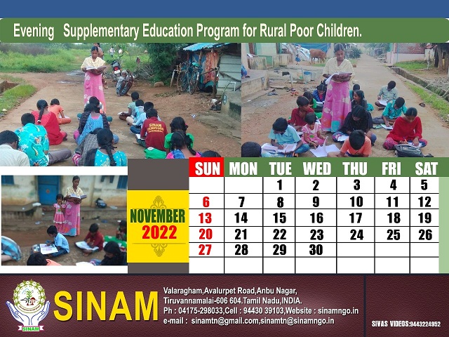 The under privileged rural children are organised and provided evening supplementary education, educational materials like books, Notebooks, stationeries etc and are given various training like child rights, life skill, career guidance, children parliament, summer coaching etc. The rural children are taken around the places of educational / historical importance once in a year. They are provided with dresses, school bags etc. Parenting Education was given to their parents/caregivers.